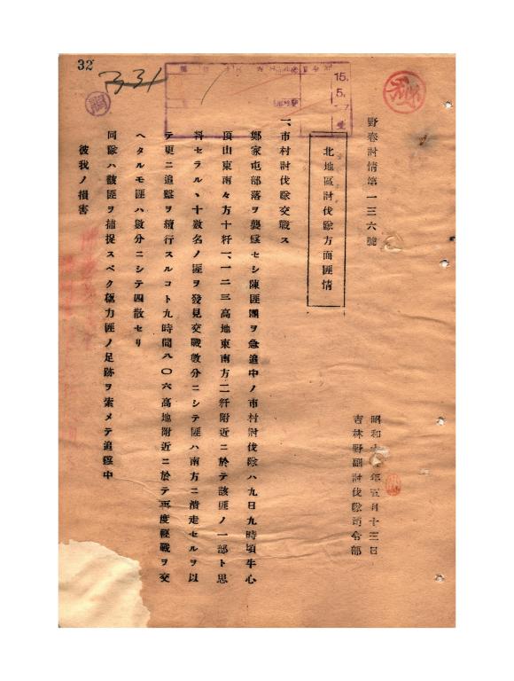 (吉林“野副讨伐队”司令部1940年《北地区讨伐队方面匪情》)