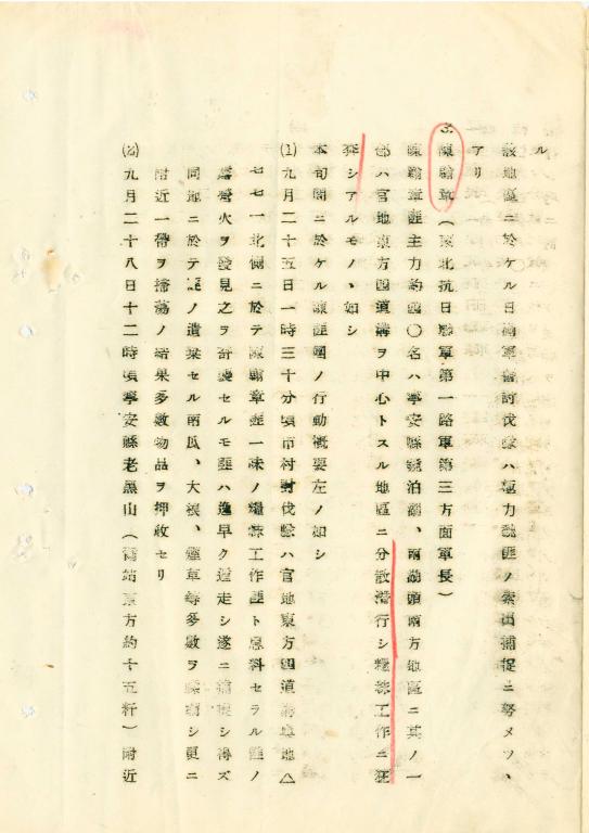 行动概要:正在附近扫荡的日军讨伐队与陈翰章部队残留人员交战,敌方遗弃了2具尸体、步枪2支以及弹药若干后,向西北撤退。